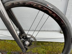 New Time Alpe d’Huez in Gloss Carbon. (FOR SALE) Time Road visible-weave frameset optimized for 700x28C tires. Campagnolo EPS Super Record S wireless disc brake groupset. Campy Bora Ultra WTO 45 wheelset. Deda bar, stem, and seatpost. This bike has been sold but we can build one to your specification.
