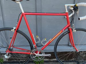 c1985 De Rosa Professional. (FOR SALE) Columbus tubing. Campy Super Record 2×7 speed groupset. Beautiful extra-large bike. 62cm seat tube, 60cm top tube (center to center).