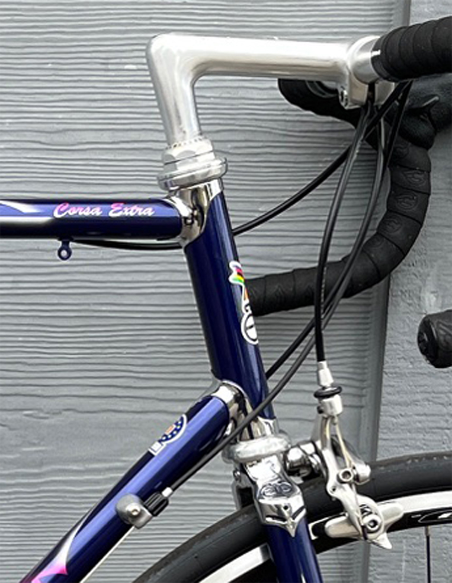We also love classic road bikes. We maintain a stock of high-end drop handlebar bikes from the 1970s to today. Some are team race bikes; some have modern integrated shifting; some have downtube shifters; and most are equipped with Campagnolo components. We also have a range of affordable classics, many with unique characteristics.